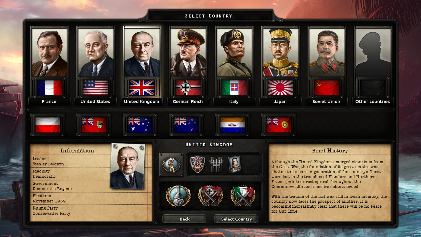 Hearts of Iron IV, oyunculara dünya genelinde 100’den fazla ülke ile oynama fırsatı sunar. Bu ülkeler, büyük güçlerden küçük uluslara kadar geniş bir yelpazede yer alır. Her ülke, kendine özgü avantajlar, zorluklar ve oynanış tarzları sunar. Oyuncular, Almanya, Sovyetler Birliği, Amerika Birleşik Devletleri veya Japonya gibi büyük güçlerle dünya hakimiyeti için mücadele edebilir ya da daha küçük ülkelerle bağımsızlıklarını koruma veya bölgesel güç olma mücadelesi verebilirler. Ayrıca, oyuncular farklı ideolojiler (faşizm, komünizm, demokrasi veya monarşi gibi) altında ülkelerini yönetebilirler, bu da oyun içinde farklı stratejiler ve sonuçlar doğurur.